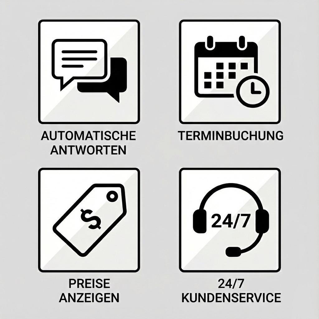 📅 Termine automatisch buchen🕒 Öffnungszeiten anzeigen💸 Preise direkt im Chat💬 Häufige Fragen beantworten⚡ 24/7 Kundenservice direkt in Instagram